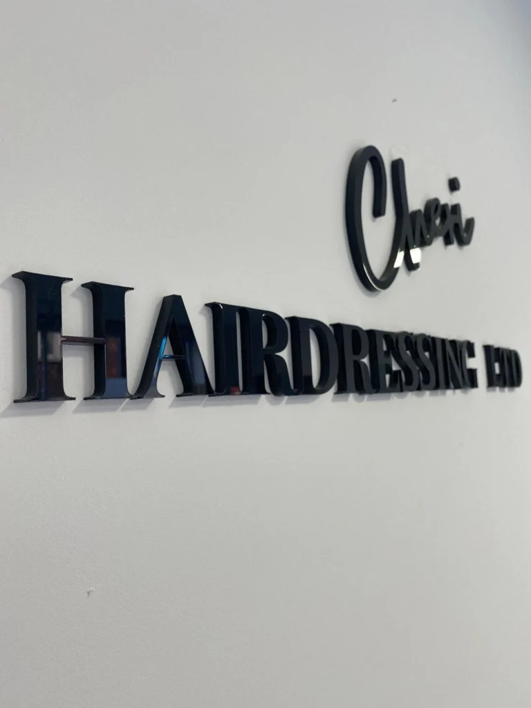 These signs are also commonly found in reception areas, conference rooms, and feature walls where brand identity needs to be clearly presented. Retail stores and salons also use metal on acrylic signage to create a modern and polished interior look.