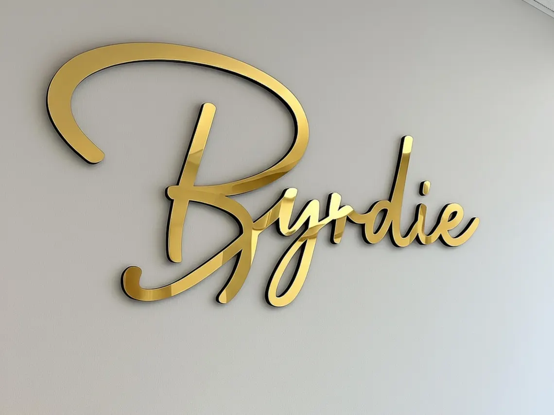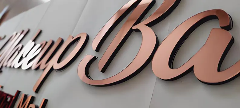 Mirror finish metal on acrylic signs use polished metal surfaces on acrylic panels to create a bold and premium look. The reflective finish enhances light and depth, making them ideal for luxury interiors and brands that want a strong and visually striking presence.